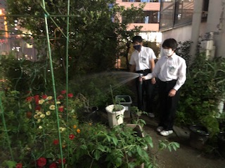 新体制になり、2年生の部長が前に立ちました。帰りに庭の水撒きをして帰りました。