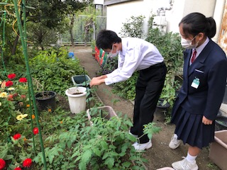 今日も文化発表会の準備をして、庭ではトマトの脇芽を取りました。昆虫班は“庭にいる虫”をテーマにコオロギの観察を行っています。