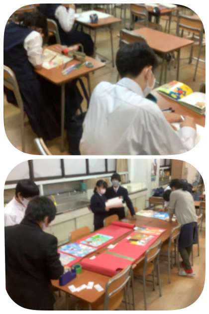 1・2年生は、展示の準備を進めています。