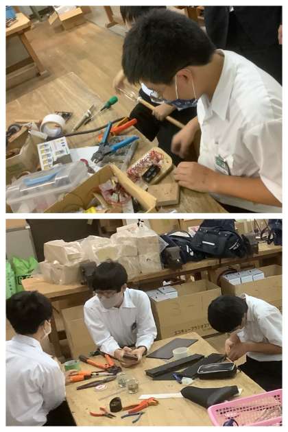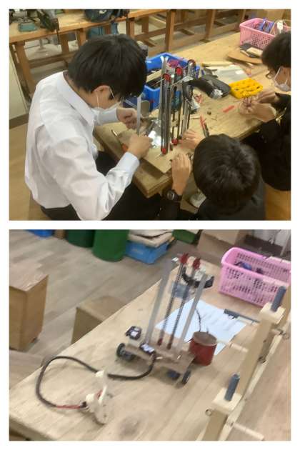 技術部では、大会に向けてロボットの調整を続けています。今年の課題は例年より難しいとのこと。仲間で知恵を出し合い、マイロボットの改良に努めています。