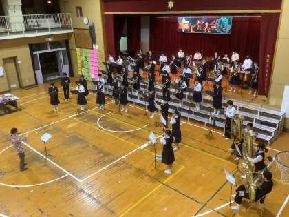 3学年揃っての初めての合奏。短い時間でしたが、集中して舞台練習に挑んでいました。
