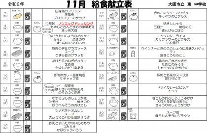 ※ 11月2日(月)の給食に「ノンエッグドレッシング」が追加されています。