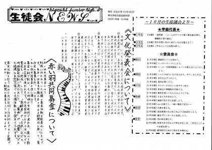2年生を中心とした生徒会執行部のメンバーからのはじめての生徒会NEWS10月号が発行されました。