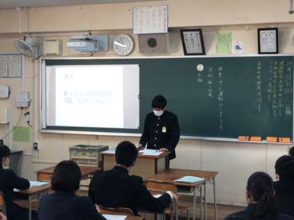 3年生、2時間目は情報機器実行委員によるアンケートの結果発表です。