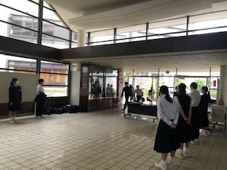 雨の朝です。後期から、朝の音楽に瀧廉太郎の「花」が流れています。校内は落ち着いた雰囲気です。