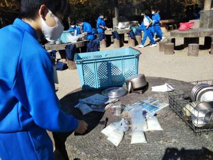 米は防災訓練も兼ねて、袋を利用した方法で準備しています。