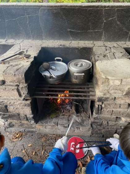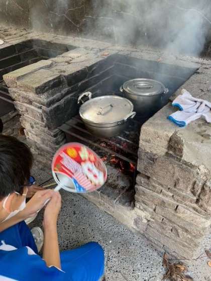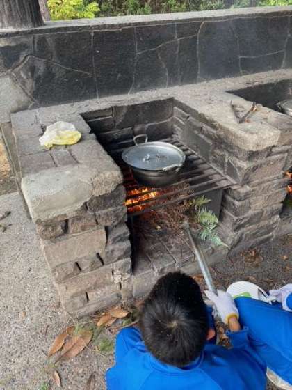 5組の様子です。なかなか大きな火が出来ず苦戦しましたが、もうすぐ出来上がります。