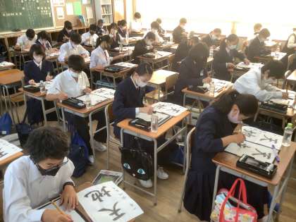 芸術の秋、1年生の美術と書道の様子です。昨日の校外学習の疲れも残っているでしょが、集中して創作活動に取り組んでいます。頑張れ東中35期生!!