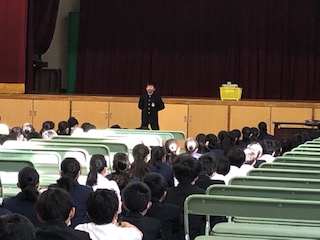 また、学年主任の中西先生から、SNSや言葉を使って、人の見た目を揶揄する発言について、注意がありました。コロナウイルス感染拡大対策を余儀なくされた世の中で、また新たに、人を揶揄う言葉が生まれています。これは大変悲しいことです。
