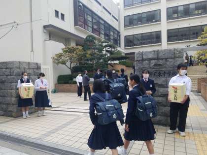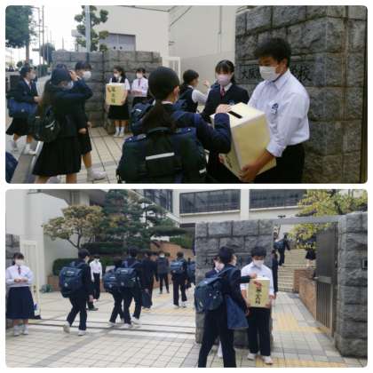 今週は生徒会が中心となり、赤い羽根共同募金の運動を行っています。