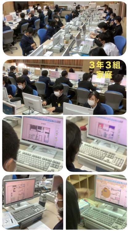 3組は家庭。パソコン教室でオリジナルの部屋のレイアウト作製の仕上げです。個性的な部屋ができてきています。
