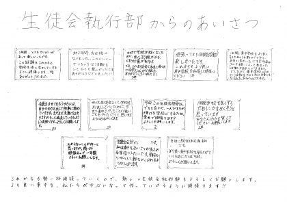 裏面は「生徒会執行部からのあいさつ」です。(こちらをクリックしてご覧ください