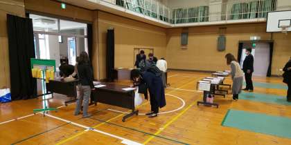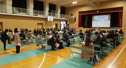 保護者の皆さまには、検温のうえ体育館に入って受付をしていただく等、感染症対策にご協力をいただいています。