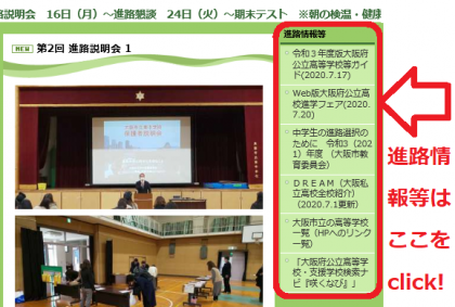 また、学校ホームページでは画面の右側に「進路情報等」のリンクを集めていのでますのでご活用ください。