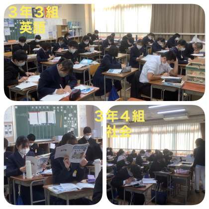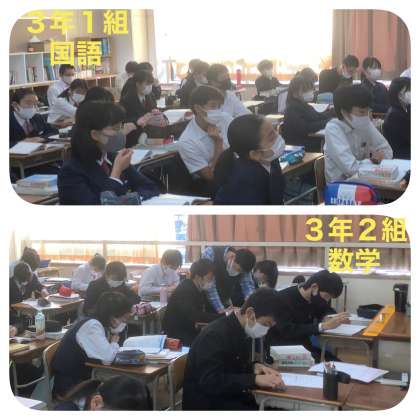 令和2年を締め括る期末テスト(24日〜26日)まで1週間。中間テストの成果と課題を活かして学習を進めます。そのためにもまずは授業。3年生では5クラスとも集中して授業を受けています。