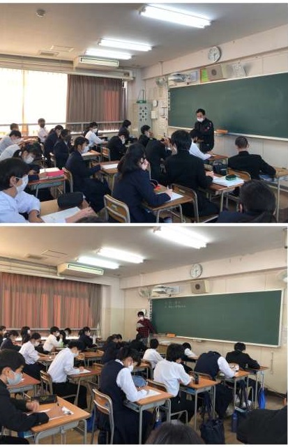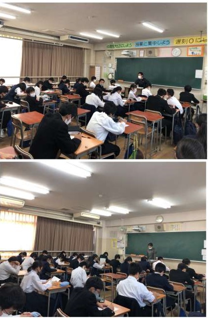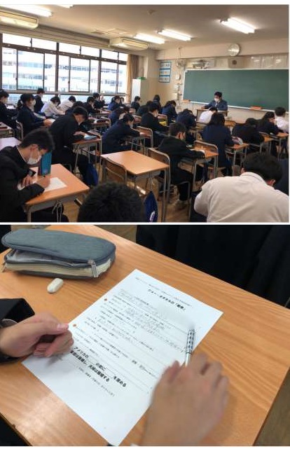 6時間目は各教室にて、5時間目で視聴したビデオについての振り返りを行っています。戦争で起きた事やそれに関わった人たちの想いをふまえて、ワークシートに一生懸命、取り組んでいます。写真は上から2年1組〜5組の様子です。
