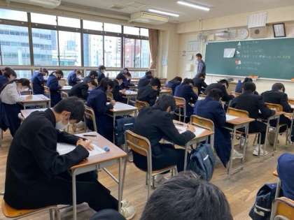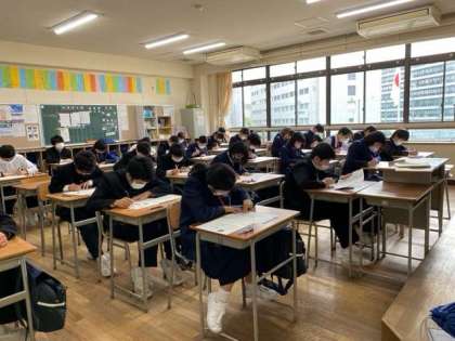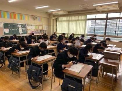 期末テスト2日目の1時間目理科が始まりました。各教室では朝から最後の確認を集中して行えていました。