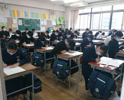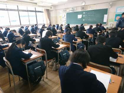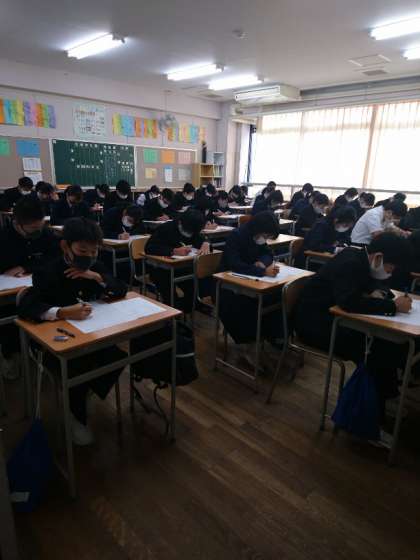 最後まで一所懸命に解答しようと頑張っている生徒が多いです。引き続き、3日目の明日も頑張りましょう!