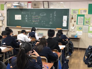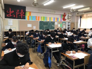 3限目は音楽です。リスニングテストでは校歌の歌詞が出てきました。