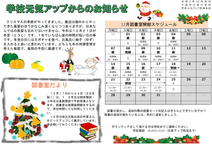 図書館と学校元気アップからのお知らせ(12月)