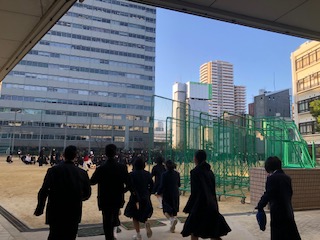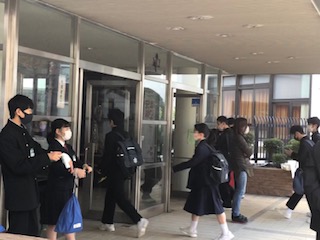 朝から全校集会の準備が行われています。 今日も走って門を通る様子が見受けられました。余裕をもって行動したいですね。