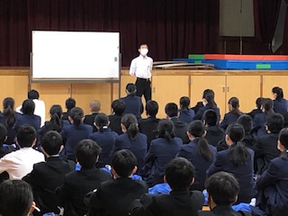 保健体育委員、美化委員、風紀委員から、それぞれ今月の月目標の発表がありました。どの委員会も、皆さんが学校生活を気持ちよく行えるように月目標を考えています。しっかり守りましょう。