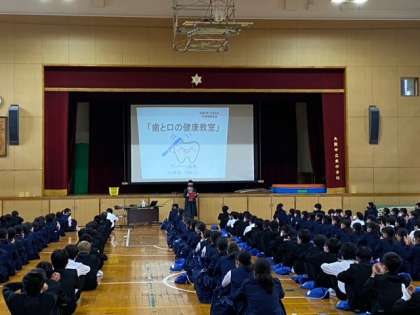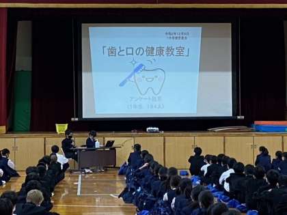 6時間目は体育館で「歯と口の健康教室」が行われています。