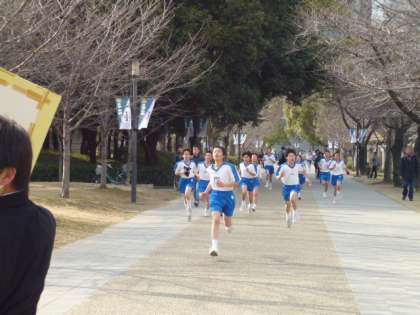 スタート直後から大集団による、激しい先頭争いが続いていましたが、少しずつ集団がばらけ、いよいよ持久力の勝負!みんなゴールを目指して頑張っています!!