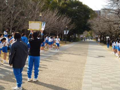 長かった3.2kmの道のりもいよいよ、ゴールが迫ってきました!!男子1,2年生のマラソンも大詰め、ゴール付近では頑張る男子を応援する女子が待っています!!