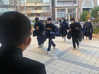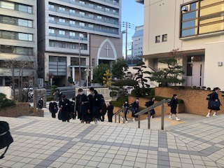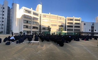 二学期最後の一週間です。今日は朝から全校集会が行われています。集合を待つ間、静かに黙想をしています。