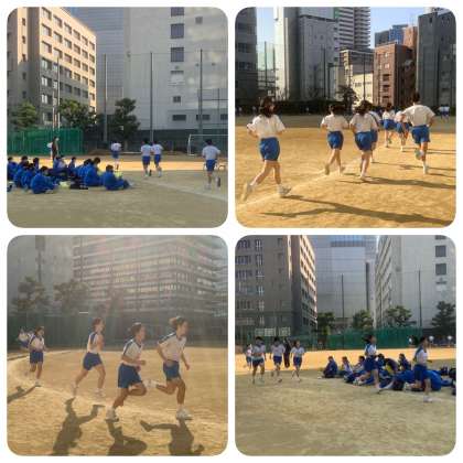 3年生の保健体育の授業は長距離走です。2人ペアとなり、走るだけでなく、バディとして声を掛け、、ラップタイムを記録することも大切な役割です。「前回の(自分の)記録を6秒上回りました!」と嬉しそうに先生に報告する素敵な笑顔がありました。