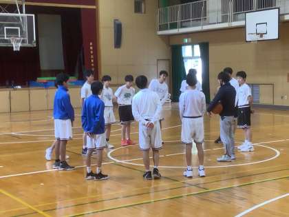 大阪市ベスト8進出をかけて、1月10日(日)の大会に出場する男子バスケットボール部。2年生と1年生に分かれての2部練習では、ゲーム形式の練習に熱が入ります。ミーティングも熱いものがあります。