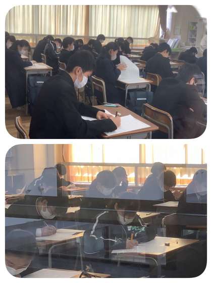 実力テストの最終回に挑んでいる3年生。廊下越しにもその緊張感と集中している気迫が伝わってきます。コロナ禍をともに過ごしてした仲間と卒業まで駆け抜けます。