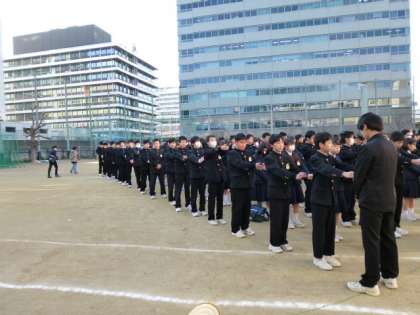 先週の全校集会で表彰があった百人一首大会で欠席した生徒の表彰があり、続いて2月4日に行われた大阪城マラソン大会の各賞の表彰がありました。