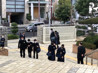 朝から気温が低く、地面がぬれていました。今日は45分授業です。