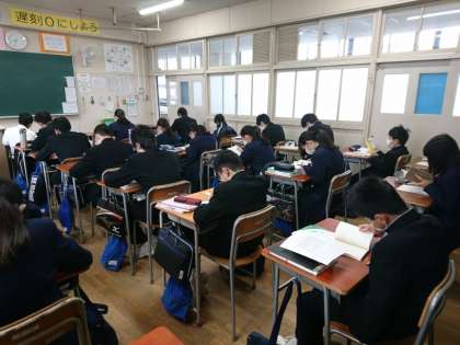 朝読書と朝の学活の様子です。学活では先生の話を聞いて、1日の流れを確認しています!
