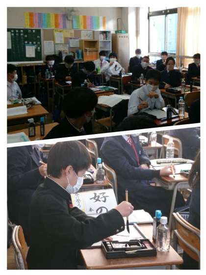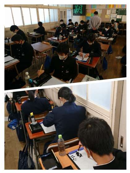 新年に相応(ふさわ)しい言葉や、自分の決意を表す言葉を書いています!!