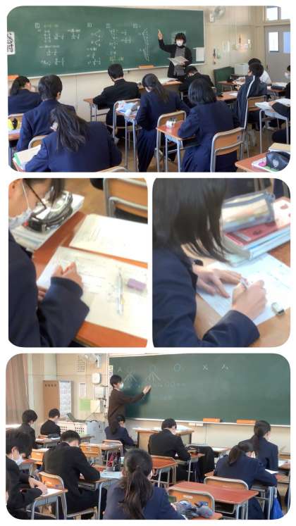 2年生の数学の授業は、2つの教室に分かれて、同じ教材を使い、確率の単元を習熟度別少人数授業で行っています。