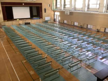 3年生が、学年末テスト終了後に会場の設えをしてくれました。開始は14時からです。窓等を開放して行いますので足元を暖かくしてお越しください。また、健康観察表を受付でご提出ください。