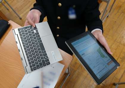 「タブレット端末を丁寧に扱おう」「画面をタッチするときは強く押さないようにしよう」「タブレット端末を持って振り回さないようにしよう」など、先生からいくつかの注意がありました。