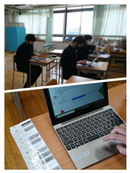 わかくさ学級の授業で、タブレット端末のキーボードドックの取り付け・取り外し方法などを確認しました。