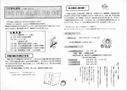 3年学年通信 2月号をアップしました