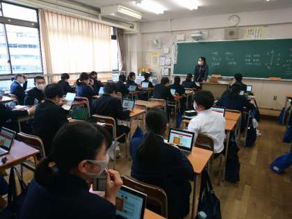 2年生は6時間目に一人1台のタブレット端末を使って、気になる高校などを調べています。これからも使い方をしっかりと覚えて、使いこなせるようになってくださいね!