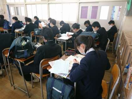 テストが始まる前には、ノートやプリント等で重要事項を確認している生徒の姿が多くみられます。