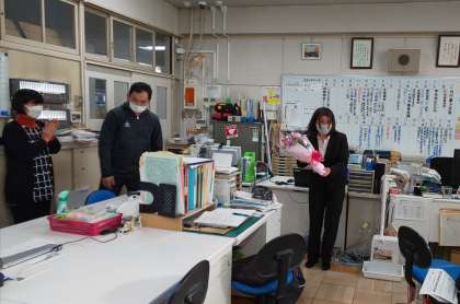 2月8日(月)の全校集会で生徒の皆さんにはご挨拶をいただきましたが、本日をもって、学習サポーターとしてお世話になりました先生が離任されます。
