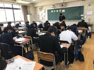 5時間目の総合の時間はクラスの仲間へのメッセージ書きや3年間の振り返り、自己申告書などたくさんの活動が行われています。クラスの仲間からメッセージをもらってみんな嬉しそうでした。
