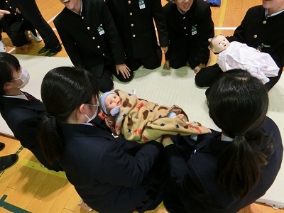 妊婦体験では、あまりの重さに転んでしまう生徒もいたり、そのような妊婦さんの大変さや、赤ちゃん体験で赤ちゃんへの接し方の難しさなどを体験を通して勉強することができました。