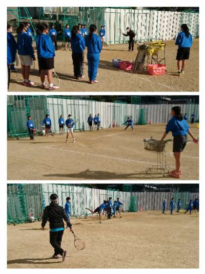 外部からソフトテニスの指導者が来てくださり、基本のストロークやサーブ等について、アドバイスをいただくことができました!