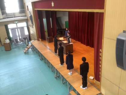 卒業式の練習は入場の確認に続いて、卒業証書授与の所作の確認です。