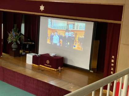 学級代表生徒のメッセージに続いて、卒業の歌、そして「思い出」のDVDです。